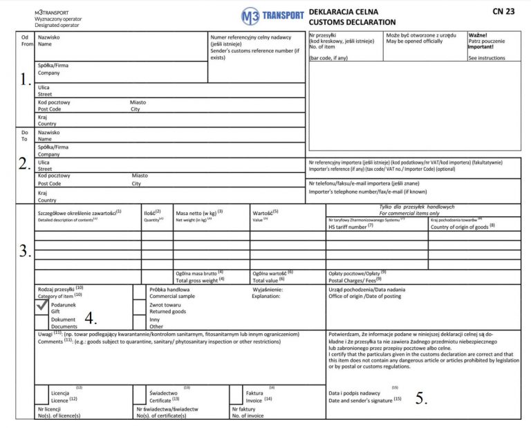 Jak wypełnić deklarację cn 23?