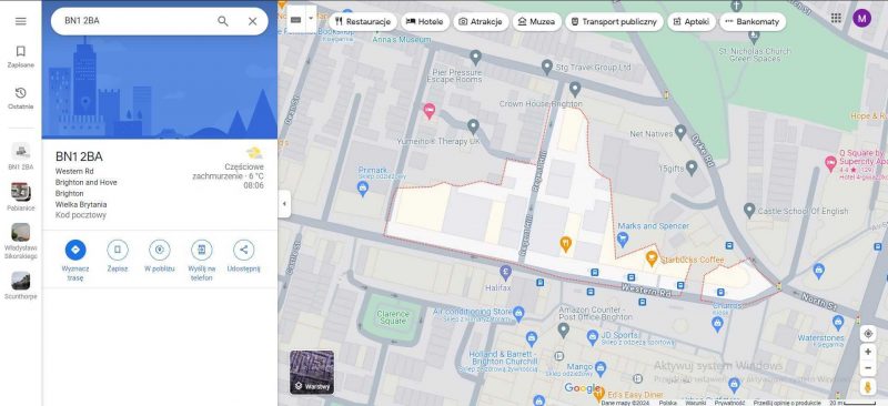 Kod pocztowy możesz zweryfikować na stronie angielskiego urzędu pocztowego: https://www.royalmail.com/find-a-postcode. A także w prosty sposób przez stronę https://google.com/maps, gdzie po wpisaniu kodu pocztowego wyświetli nam się miasto, ulica oraz nawet cały obręb objęty danym kodem.